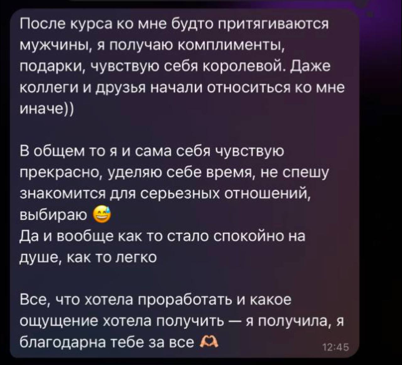 Да, в самостоятельном тарифе предусмотрен общий чат участниц и возможность присылать отчеты, а в тарифе с поддержкой у вас полноценная связь с Вероникой, доступ к особому чату, где вы можете получить ответ на любой ваш вопрос, в том числе по заданиям курса, и лично проконсультироваться с автором проекта.